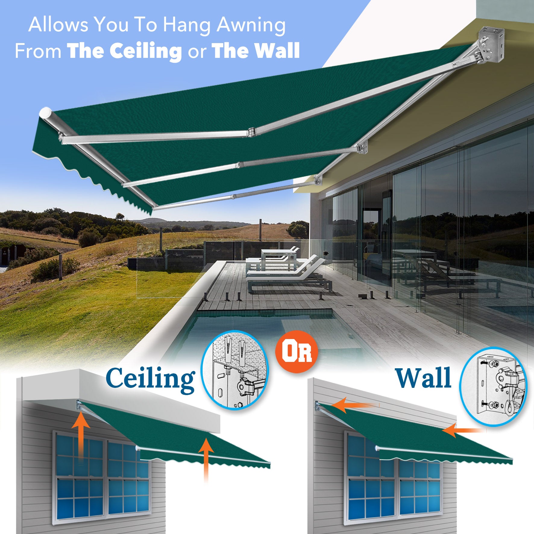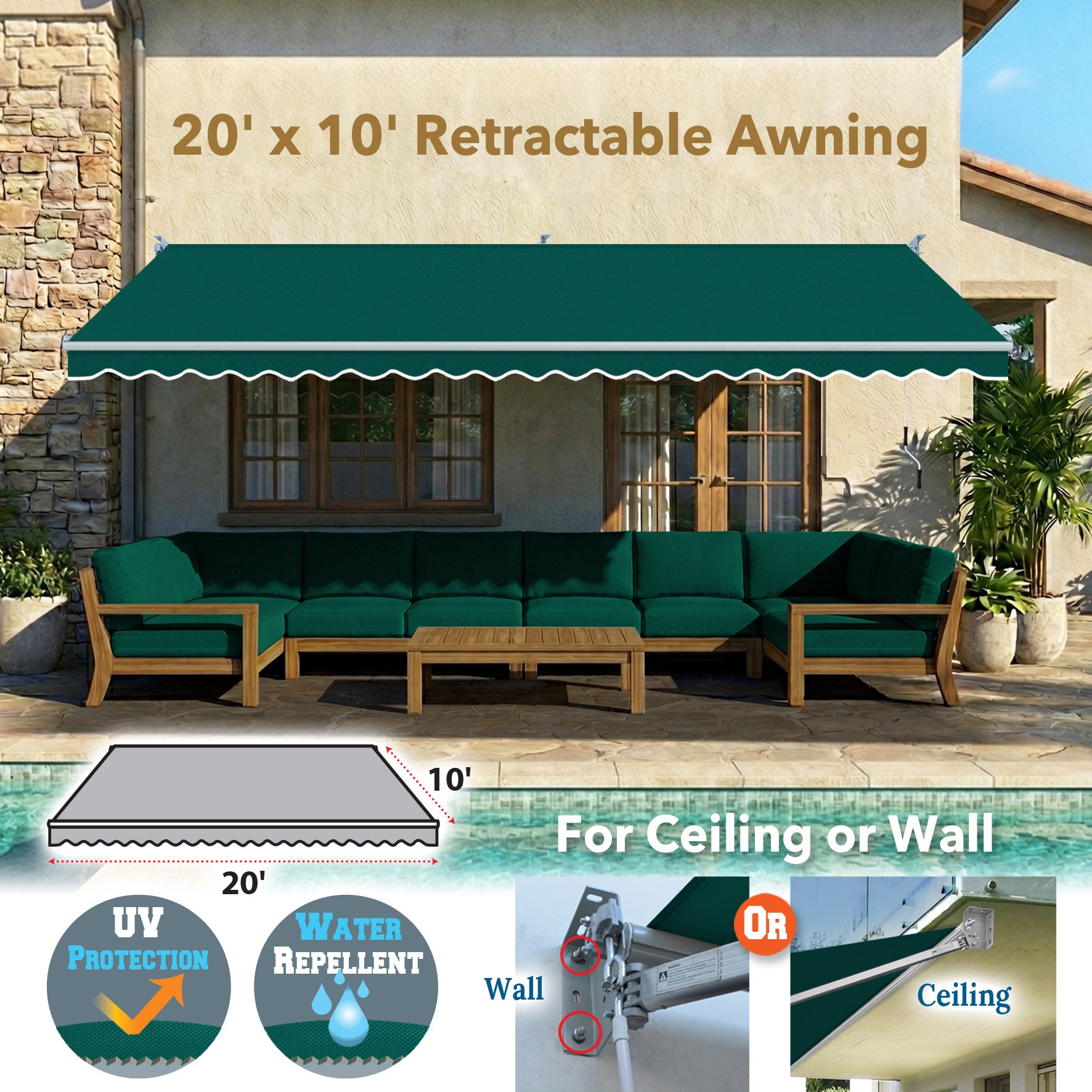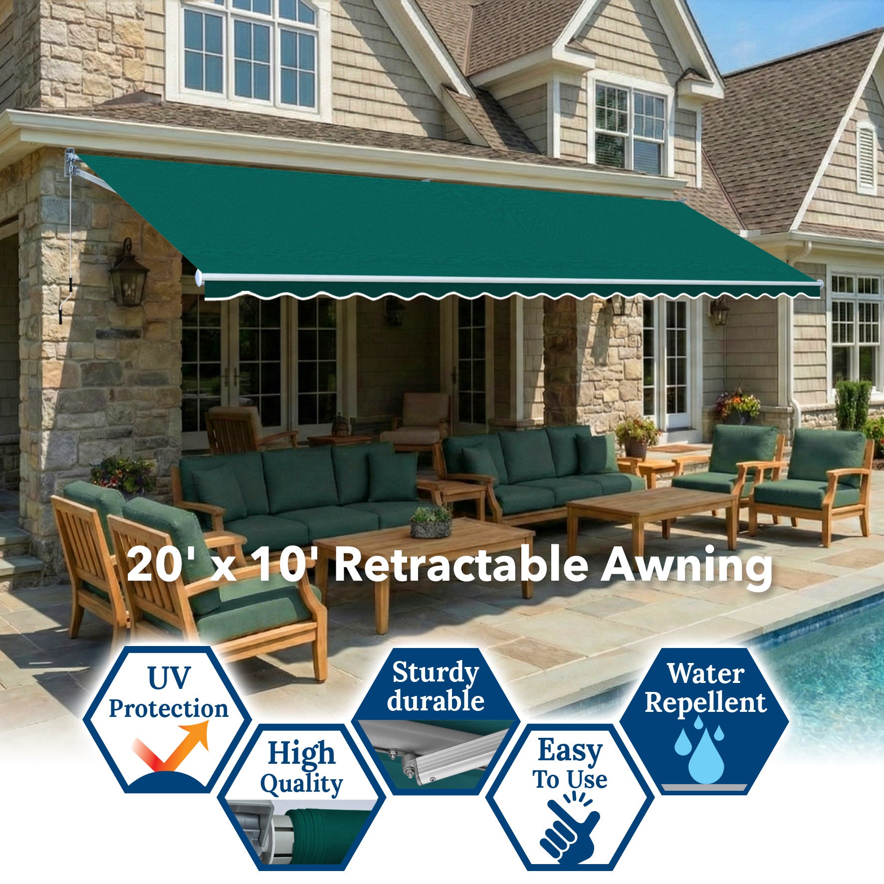 20' x 10' Large Manual Retractable Patio Awning | Commercial Grade Heavy-Duty Shade