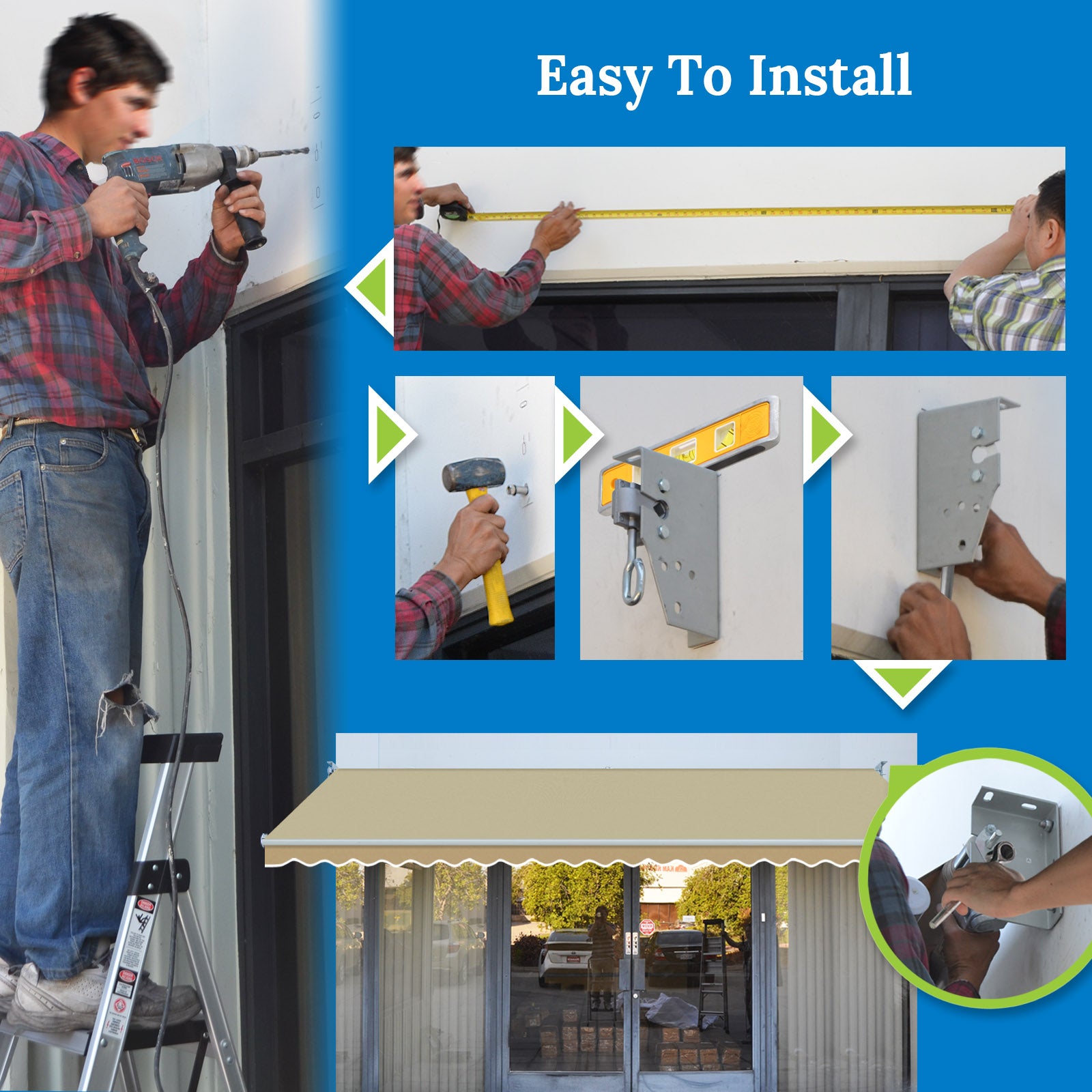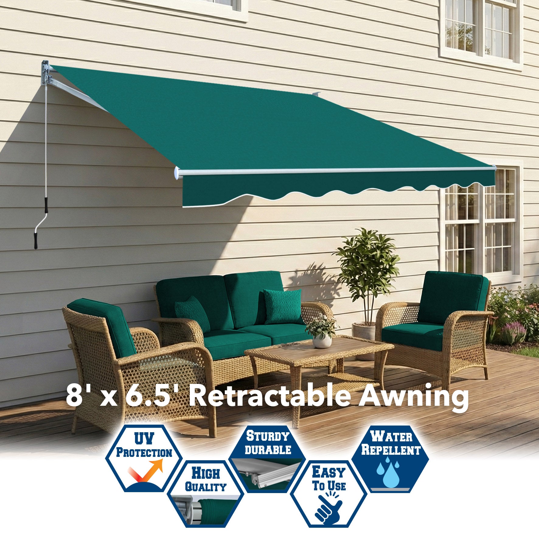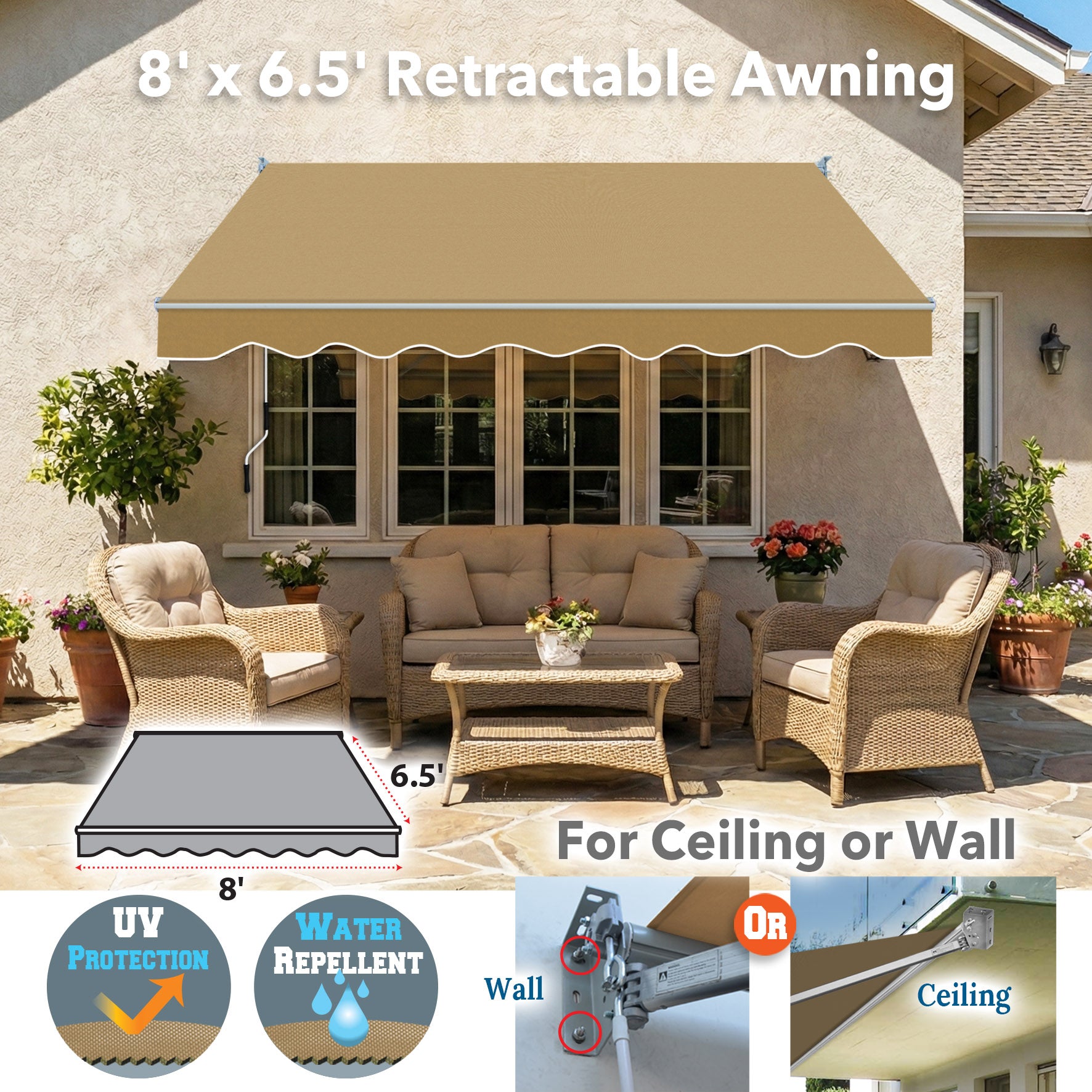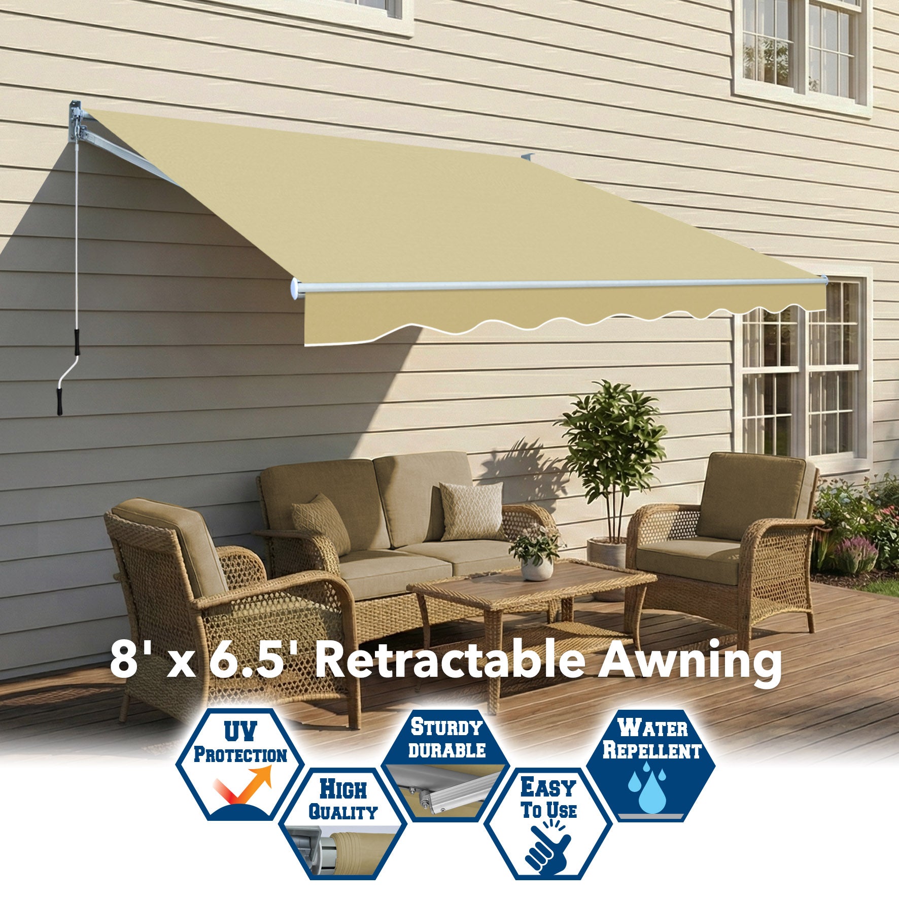 Transform your small balcony or deck into a comfortable retreat with our 8' x 6.5' Manual Retractable Awning. Engineered for durability and ease of use, this awning is the perfect DIY solution for compact outdoor spaces.