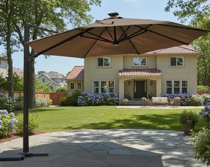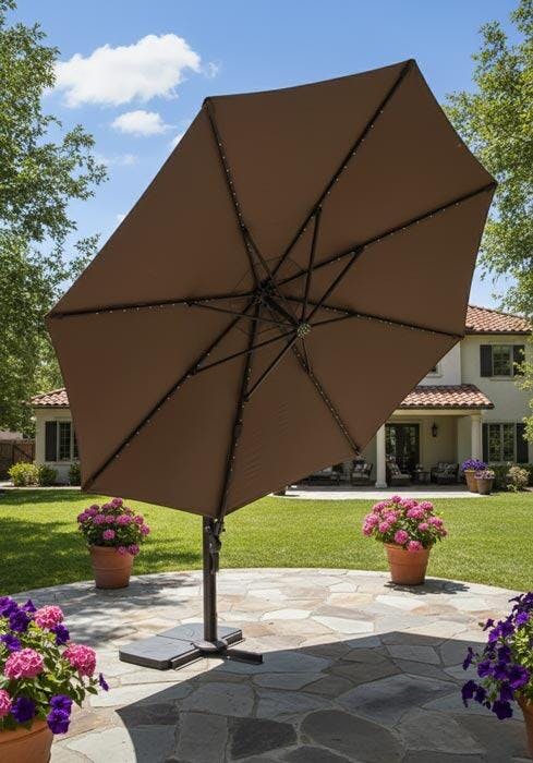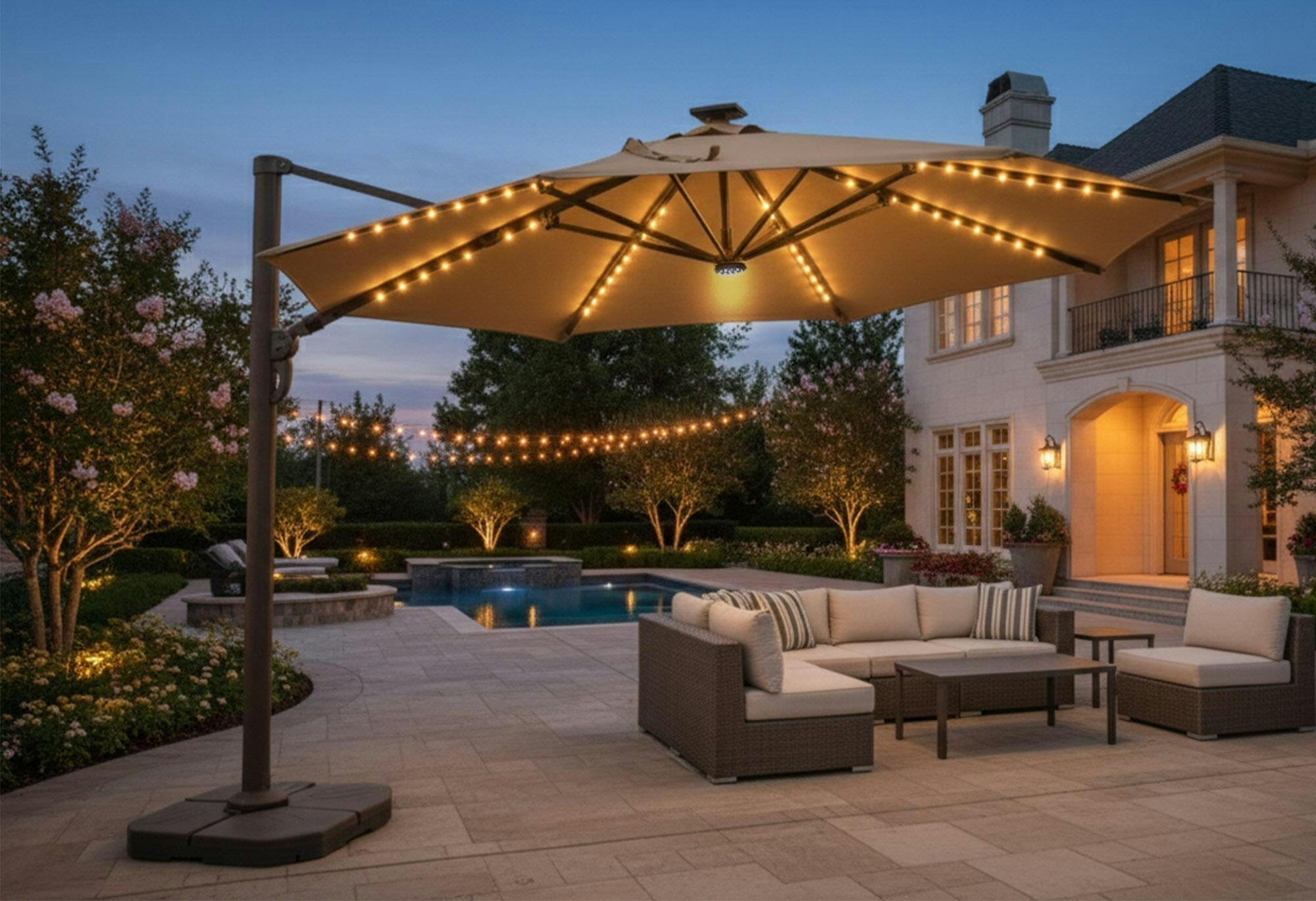 Enjoy your evenings with integrated solar-powered LED lights, casting a warm glow for nighttime entertaining. The all-aluminum frame and 8 heavy-duty ribs are finished with a durable powder coating to resist rust and corrosion, ensuring long-lasting performance.